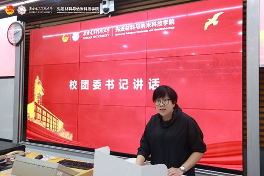 傅超代表校团委向大会的召开表示热烈的祝贺,向各位代表和学院团员青年致以亲切问候,向长期以来重视、关心和支持共青团工作的学院党政领导、积极参与共青团工作的各位老师表示感谢和敬意。她充分肯定了材料学院团、学、研在思想政治教育、组织建设、科技创新、社会实践、志愿服务、校园文化活动等方面所做的工作和取得的优异成绩,并代表校团委对材料学院团学研工作提出要求,一是构建好党领导下的共青团主导的青年学生组织体系,主动争取和依靠党委及各部门的支持,捋顺共青团、学生会、学生社团的关系,完善各级各类团学组织间的组织链条,形成组织合力;二是夯实基层基础,重视团支部的活力提升,担负起推优入党的光荣任务;三是深化学生会的组织改革,加强学生社团管理,严格执行高校学生社团管理的有关规定,找准组织定位、明确组织职能、聚焦主责主业,发挥带头作用,激发基层组织活力,形成独具材料学院特色的共青团工作新局面,为党的事业不懈奋斗。