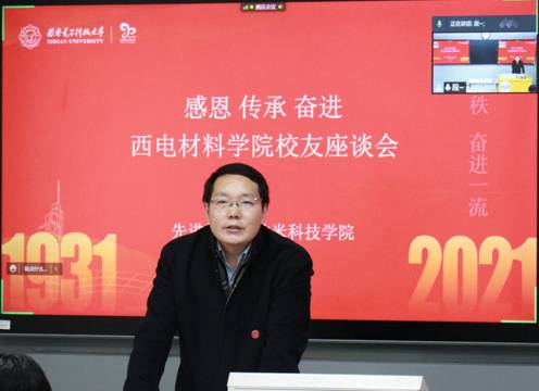 首先,施建章副院长代表学院向参加座谈会的全体材料学院校友和出席师生致以亲切的问候,对大家长久以来为材料学院发展的辛勤付出、关心、帮助和爱护表达真诚的感谢!值此西电90周年校庆之际,我们既要感恩母校的培养,传承西电红色基因,赓续西电人才培养现象,铭记老师甘为人梯无私奉献的精神,更要凝心聚力、团结一心,为材料学院一流专业、一流学科、一流人才培养拼搏奋进!