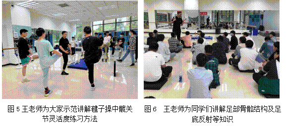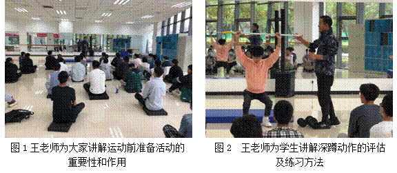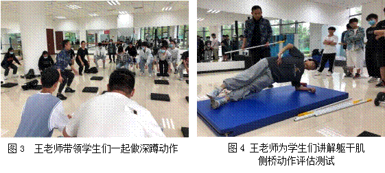 在两个多小时的集体导学活动中,王老师给同学们耐心讲解了许多科学锻炼和防护的使用知识,以及科学减肥和灵巧训练的方法,包括:一般热身运动的顺序和常规动作;强化心肺功能的运动强度及要求;在体育运动中踝关节、膝关节、颈部、肩部、腰部等部位的常见损伤及防护方法;如何判断自身关节部位的运动能力;如何在身体无疼痛的条件下进行功能性训练;如何评估自身各部位肌肉水平的方法;如何理性看待体型肥胖、造成肥胖的原因以及如何科学减肥;深层肌和浅层肌的差异及训练方法和常见简单的室内运动训练方法与技巧。王老师的讲解风趣幽默,科学易懂,穿插着标准的动作示范和有趣的互动环节,深受同学们的欢迎和好评。同学们在导学活动结束后纷纷表示收获良多。在各位老师同心协力的合作下,本次集体导学活取得了圆满的成功。