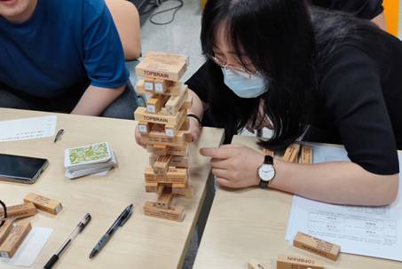 接着,王雪微老师为大家分发不同内容的卡片。大家依托这些卡片,围绕“开放我”、“盲目我”、“隐藏我”和“未知我”四个方面展开讨论,“我喜欢打篮球”、“我喜欢旅游”……大家互相分享着自己喜好和难忘的经历,不断发现自我,在聆听过程中,对课题组其他成员认识也更加深入,彼此间的信任感和依赖关系不断增进。“成长的积累”这一环节是采取游戏和讲述相结合的方式,在刘伟老师的循循善诱下,大家在欢声笑语中分享彼此记忆深刻的伤心往事,刘老师强调,成长过程中存在的困难并非是无法逾越的高山,彼此熟悉信赖的环境能够让个人和团队更加坚定地发展下去,当大家遭遇困难时,要学会给自己积极的心理暗示并选择合适的方式排解自身压力,身边的同学和师长都将成为自己排除万难的助力和臂膀。