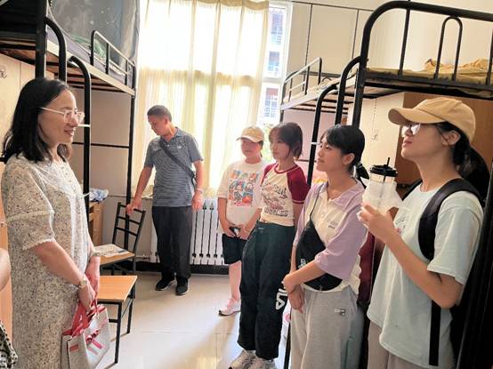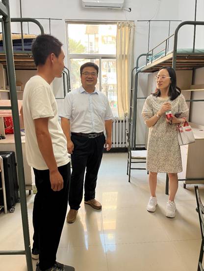 学院党委书记卢硕、执行院长杨丽、党委副书记陈刚、本科生辅导员李逸君和研究生辅导员刘男一同前往宿舍看望、慰问新生。他们关切地询问新生个人与家庭情况、来校是否适应、有什么困难需要解决,并鼓励新生多和老师请教,多向优秀学长学习,多和同级同学交流,尽快融入大学新生活。此外,学院为新生搭建起与后勤的服务交流桥梁,为新生暖心解决公寓所遇到的各类诉求和问题。