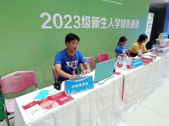 志愿者在新生扫码报到处扫码
