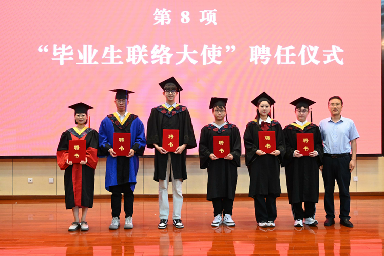 海内存知己,天涯若比邻。宋刚锋为2024届“毕业生校友联络大使”同学颁发聘书并合影留念,希望联络大使与使者成为联系学校、学院和校友们的桥梁与纽带,欢迎各位同学常回家看看。