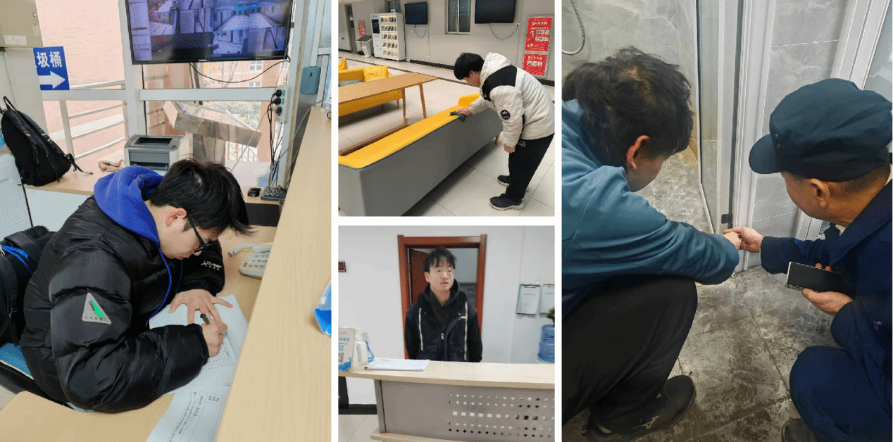 在宿舍楼管体验岗上,同学们认真履行职责,督促学生遵守公寓管理规定,协助楼管进行外来人员登记和设施损坏报修工作。通过这些日常管理任务,同学们体会到了宿舍管理的重要性,也学会了如何更好地与他人沟通和协作。