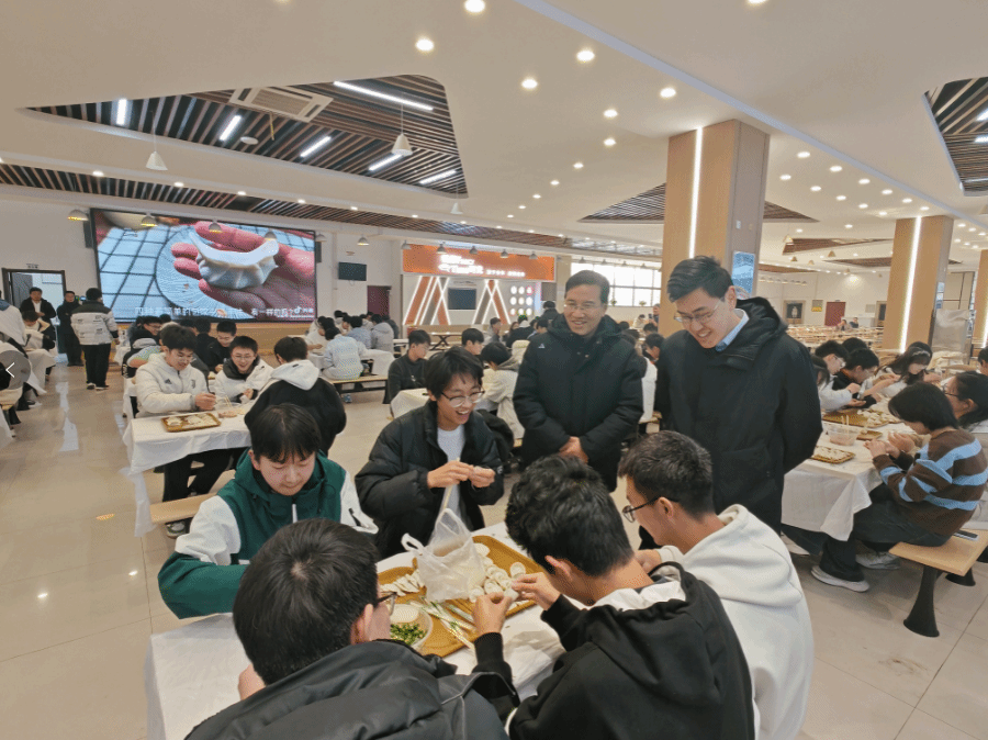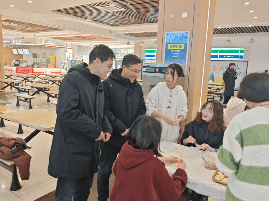 在包饺子过程中,师生们进行了亲切的交流。宋刚锋与陈刚不时走到同学们中间,询问大家的学习和生活情况,鼓励同学们要珍惜大学时光,积极参与各类活动,全面提升自己的综合素质。现场欢声笑语不断,洋溢着浓浓的师生情谊。