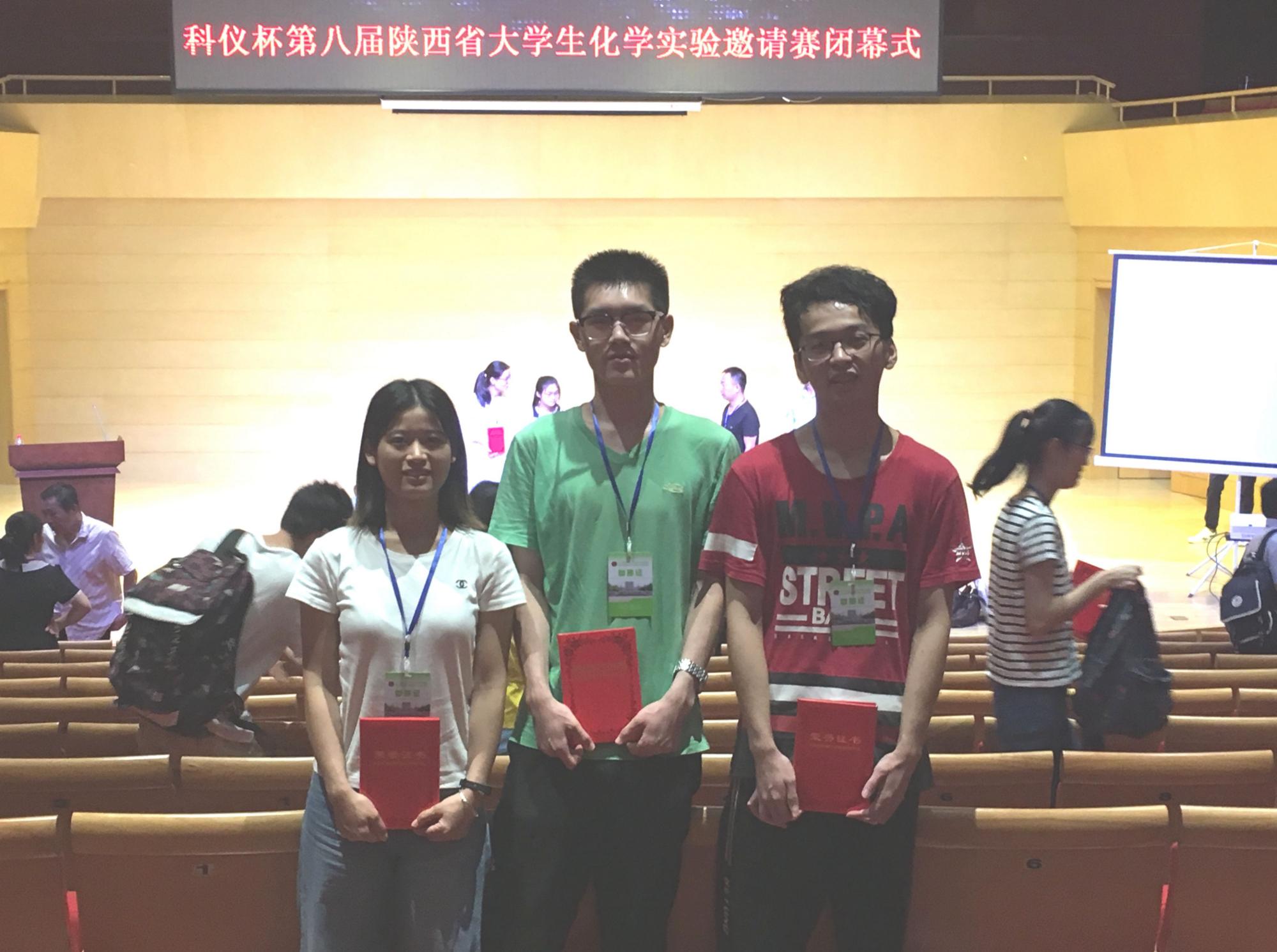 (通讯员李淑萍 田娜玲)近日由陕西省化学学会和陕西省高等学校化学实验教学中心联席会主办的第八届陕西省大学生化学实验邀请赛在渭南学院举行。由我院应用化学实验教学中心梁燕萍、朱黎霞及李淑萍老师带队,应用化学专业3名学生组成的代表队参加了竞赛。经过紧张激烈的角逐,西电代表队吴思广同学获得大赛一等奖,张茂迪和王腾同学获得大赛三等奖。