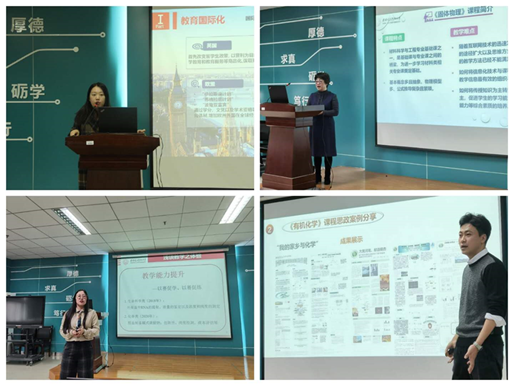 史玮老师以《基于案例的专业课课程思政设计与实践》为题,从专业课课程思政建设的背景与现状,课程思政设计思路与策略,课程思政案例设计三个方面做了精彩的报告。教育部自印发《高等学校课程思政建设指导纲要》以来全面推进高校课程思政建设,对于自然科学类专业课而言,如何在课堂教学中进行人文教育和思政教育,历来被认为是一个难点。史玮老师认为自然科学课程贯彻课程思政应与国家整体发展战略相结合,需结合不同专业的人才培养目标,以培育科学共同体的文化观念为抓手,结合成果导向教育理念,将思政元素和教学策略落实于教学过程中。