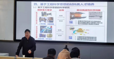 周益春教授结合自身几十年的教学、科研工作及人才培养的思考,为大家奉献了一场精彩报告。他从大学和基础教育、我国大学生现状与材料类创新人才需求、基于钱学森工程科学的材料类人才培养理念、基于工程科学思想的材料类人才培养、青年教师的健康成长五个方面进行了详细阐述。