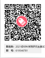 具有复试资格的同学请扫描以下二维码,添加至“2021级材料学院研究生复试群”,验证信息请填写“考生姓名+准考证号后4待管理员审核后入群。